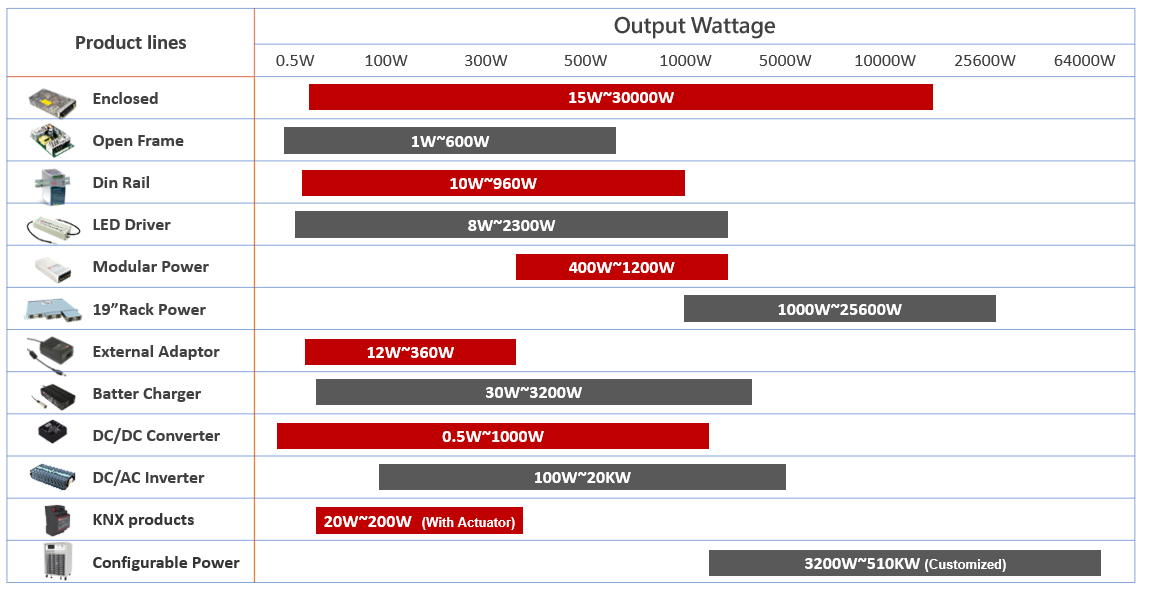 Sosteniendo el espíritu empresarial de la tecnología arraigada, MEAN WELL ha incorporado cada año un 10% de nuevos dispositivos a sus líneas de productos. En la actualidad, ofrece soluciones completas de fuentes de aliment in individual aliment control 25 inc. de LED, cargadores de baterías de CA/CC, convertidores de CA/CC e inversores de CA/CC.
