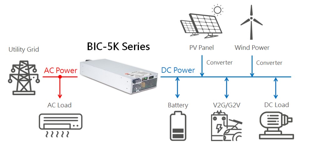 MEAN WELL's latest BIC-5K bidirectional power supply complies with the international grid-connection standard IEC 50549-1 and provides the critical performance required for grid stabilization: