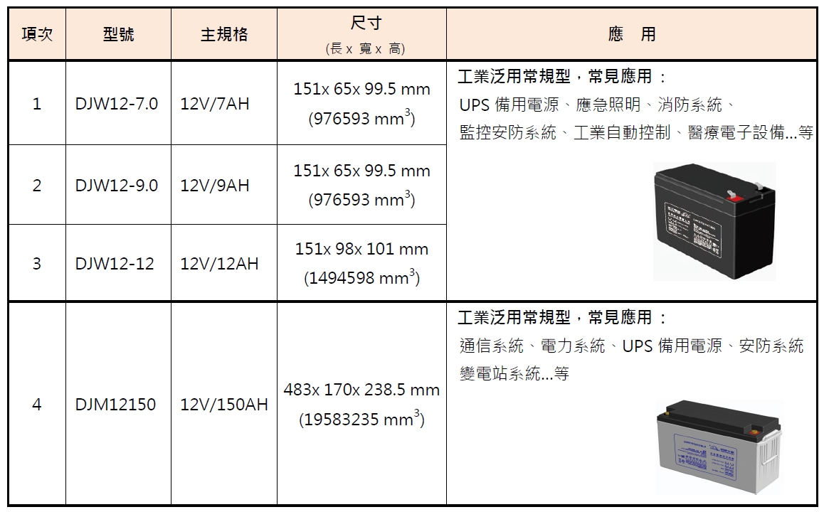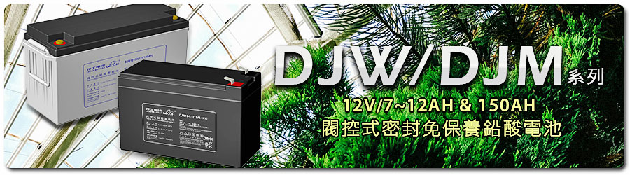 DJW / DJM系列:12V/7~12AH & 150AH 閥控式密封免保養鉛酸電池